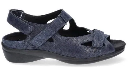 Sandaal van Durea in blauw nubuck met een fijne glanzende print en 3 klittenbanden. De banden zijn verstelbaar met klittenband. Geschikt voor uw eigen steunzool op een wijdte G ,op de leest 216 met een lage hak van 2 cm. De sandaal heeft een lichte en soepele PU zool met demping. ||Durea is een Nederlands fabricaat, met diverse leesten en wijdtematen. Het ontwerp en de afwerking geschiedt in Drunen. De productie vindt in het buitenland plaats, waar Durea eigen fabrieken bezit, onder toezicht van eigen mensen. Iedere schoen ondergaat ca 200 handelingen, Daar Durea alles in eigen beheer heeft kunnen zij hun hoge kwaliteit waarborgen.