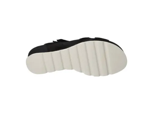 Sandaal van Durea met 3 klittenbanden in zwart suede. De banden zijn verstelbaar met klittenband. De hak lijkt hoger lijkt dan die is door de plateauzool. De zool is antislip en heeft extra demping met een hakhoogte van 2 cm. Geschikt voor uw eigen steunzool op een G wijdte, op de leest 024. Daar de zijkanten open zijn zul je sneller de steunzool zien liggen. Een tip is om er een kousenvoetje omheen te doen of de steunzolen speciaal in de sandaal te laten maken. ||Durea is een Nederlands fabricaat, met diverse leesten en wijdtematen. Het ontwerp en de afwerking geschiedt in Drunen. De productie vindt in het buitenland plaats, waar Durea eigen fabrieken bezit, onder toezicht van eigen mensen. Iedere schoen ondergaat ca 200 handelingen, Daar Durea alles in eigen beheer heeft kunnen zij hun hoge kwaliteit waarborgen. Durea koopt u online bij Ruttenschoenen.nl