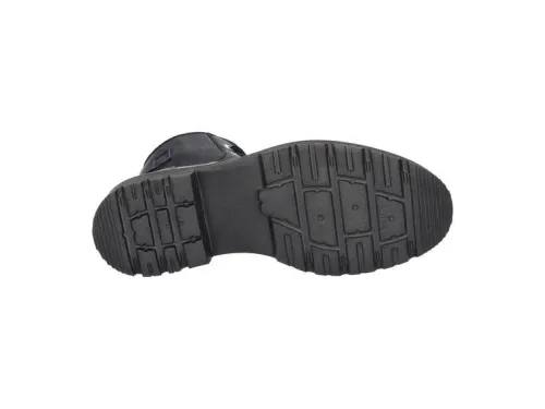 Bikerboot van Durea in zwart leer met zilveren vetergaten op een G wijdte op de leest 754 met de zool Sam. De boot heeft een lage blokhak van 16 mm met een zool van EVA. Daardoor is die licht van gewicht, flexibel en extra dempend en daarnaast ook stabiel. De voetbedden zijn uitneembaar dus ook geschikt voor eigen steunzool. ||Durea is een Nederlands fabricaat, met diverse leesten en wijdtematen. Het ontwerp en de afwerking geschiedt in Drunen. De productie vindt in het buitenland plaats, waar Durea fabrieken bezit, onder toezicht van eigen mensen. Iedere schoen ondergaat ca 200 handelingen, Daar Durea alles in eigen beheer heeft kunnen zij hun hoge kwaliteit waarborgen. Durea koopt u online bij Ruttenschoenen.nl
