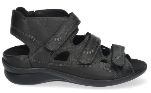 Sandaal van Durea met 3 verstelbare banden in zwart leer op een brede H wijdte op de leest 218. De sandaal sluit hoog om de enkel met klittenband. De voetbedden zijn uitneembaar en de sandaal is dus geschikt voor uw eigen steunzool. De hakhoogte is 2 cm. De sandaal heeft een lichte en soepele PU zool met demping. ||Durea is een Nederlands fabricaat, met diverse leesten en wijdtematen. Het ontwerp en de afwerking geschiedt in Drunen. De productie vindt in het buitenland plaats, waar Durea eigen fabrieken bezit, onder toezicht van eigen mensen. Iedere schoen ondergaat ca 200 handelingen. Daar Durea alles in eigen beheer heeft kunnen zij hun hoge kwaliteit waarborgen. Durea koopt u online en offline bij Ruttenschoenen.nl