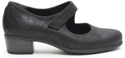 Bandschoen van Durea in zwart metallic. De band is verstelbaar met klittenband, het voorblad is glad zonder naden. Geschikt voor uw eigen steunzool op een extra brede K wijdte, op de leest 038 met een lage hak van 3 cm en een stevig contrefort. Deze schoen heeft een TPU zool en een polstering onder de voorvoet. ||Durea is een Nederlands fabricaat, met diverse leesten en wijdtematen. Het ontwerp en de afwerking geschiedt in Drunen. De productie vindt in het buitenland plaats, waar Durea eigen fabrieken bezit, onder toezicht van eigen mensen. Iedere schoen ondergaat ca 200 handelingen. Daar Durea alles in eigen beheer heeft kunnen zij hun hoge kwaliteit waarborgen. Durea koopt u online bij Ruttenschoenen.nl
