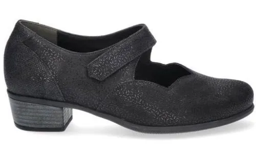 Bandschoen van Durea met een klittenband en een slanke neus in zwart leer op nubuck basis met een fantasieprint. Geschikt voor extra brede voeten en uw eigen steunzool op een K wijdte, op de leest 038 met een lage hak van 3 cm. De rand bij de wreef loopt gegolfd waardoor die minder snel zal snijden. De schoen heeft een TPU zool met polstering onder de voorvoet. ||Durea is een Nederlands fabricaat, met diverse leesten en wijdtematen. Het ontwerp en de afwerking geschiedt in Drunen. De productie vindt in het buitenland plaats, waar Durea eigen fabrieken bezit, onder toezicht van eigen mensen. Iedere schoen ondergaat ca 200 handelingen, Daar Durea alles in eigen beheer heeft kunnen zij hun hoge kwaliteit waarborgen