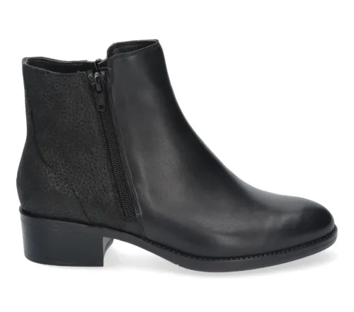 Korte laars van Durea in zwart leer met bij de hielpartij een fijne print Deze laars heeft een lage hak van ca 25 mm en een rits aan de binnenkant. De voetbedden zijn uitneembaar en daardoor is die geschikt voor uw eigen steunzool. Gemaakt op een extra K wijdte op de leest 918. Uiteraard heeft de laars een stevig contrefort. ||Durea is een Nederlands fabricaat, met diverse leesten en wijdtematen. Het ontwerp en de afwerking geschiedt in Drunen. De productie vindt in het buitenland plaats, waar Durea fabrieken bezit, onder toezicht van eigen mensen. Iedere schoen ondergaat ca 200 handelingen, Daar Durea alles in eigen beheer heeft kunnen zij hun hoge kwaliteit waarborgen. Durea koopt u online bij Ruttenschoenen.nl of Dureaonline.nl