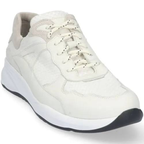Lichtgewicht sneaker van Durea met een rechte teenligging waardoor er meer ruimte in de breedte voor de tenen is. De schoen is gemaakt van wit geprint leer met wit nubuck met een Drymex voering. Daardoor is die lichter van gewicht en luchtiger met dragen. Drymax kan ook goed vocht opnemen. Uitermate geschikt om er een stukje op te wandelen. Gemaakt op een extra brede M wijdte op de leest 609. De voetbedden zijn uitneembaar. ||Durea is een Nederlands fabricaat, met diverse leesten en wijdtematen. Het ontwerp en de afwerking geschiedt in Drunen. De productie vindt in het buitenland plaats, waar Durea eigen fabrieken bezit, onder toezicht van eigen mensen. Iedere schoen ondergaat ca 200 handelingen, Daar Durea alles in eigen beheer heeft kunnen zij hun hoge kwaliteit waarborgen.