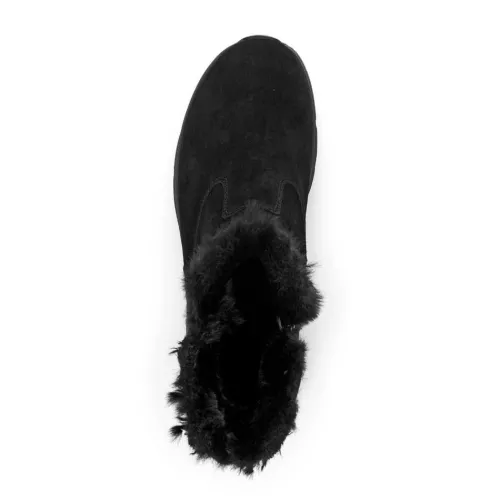 Korte laars van Gabor in zwart suede met een bontrandje met een Rolling soft zool. Deze leest heeft een speciale zool waarbij het lopen vergemakkelijkt wordt. Aan de binnenzijde zit een rits, waardoor die makkelijk aan en uit te tekken is. Het voetbed is uitneembaar, dus geschikt voor uw eigen steunzool. De laar heeft een bijna platte hak. ||Gabor is een Duits fabricaat, met diverse leesten en wijdtematen. Ze staan bekend om hun goede leesten en zachte leersoorten. Modisch comfortabel tegen betaalbare prijzen. Sommige hebben een uitneembaar voetbed. Gabor koop je online bij Ruttenschoenen.