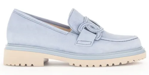 Sportieve instapper van Gabor in licht blauw suede met een profielzool op een brede H wijdte op de leest Kapsel. Over de wreef zit een sierband en aan 2 zijden elastiek zodat die mooier sluit. Het voetbed is uitneembaar. ||Gabor is een Duits fabricaat, met diverse leesten en wijdtematen. Ze staan bekend om hun goede leesten en zachte leersoorten. Modisch comfortabel tegen betaalbare prijzen. Sommige hebben een uitneembaar voetbed.