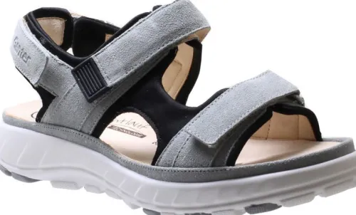 Sandaal van Ganter gemaakt om lekker op te wandelen in licht grijs suede met neopreen langs de randen afgezet. Hierdoor zit het heerlijk zacht aan de voeten. Gemaakt op een G wijdte op de leest Geva. De sandaal is verstelbaar met 2 klittenbanden op de voet en 1 bij de hiel. De sandaal heeft een goed voetbed dat uitneembaar is en heeft een bijna platte hak. De zolen zijn stevig en antislip. De voetbedden zijn uitneembaar en dus ook geschikt voor uw eigen steunzool. ||Ganter is een Duits fabricaat, met diverse leesten en wijdtematen. Zij hebben pasvorm, natuur en milieu hoog in het vaandel. Ze maken tijdloze schoenen en gebruiken daarbij materialen die zo min mogelijk het milieu belasten. Zoals plantaardig gelooid leer, kurken voetbedden tot aan papier uit duurzame bosbouw. Ganter koopt u online bij ruttenschoenen.nl