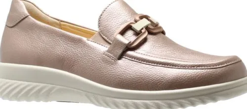 Een sportieve instapper van Ganter in het champagne metallic. Gemaakt op een brede H wijdte op de leest Heike. Met een hakhoogte van ongeveer 20 mm en uitneembaar voetbed, is deze geschikt voor uw eigen podologische zolen. ||Ganter is een Duits fabrikaat, met diverse leesten en wijdtematen. Zij hebben natuur en milieu hoog in het vaandel. Ze maken tijdloze schoenen en gebruiken daarbij materialen die zo min mogelijk het milieu belasten. Zoals plantaardig gelooid leer, kurken voetbedden, tot aan papier uit duurzame bosbouw