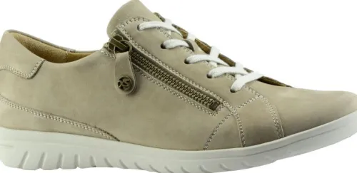 Sneakers van Hartjes in zandkleurig nubuck op een G wijdte en een polsterrandje bij de enkel. Aan de zijkant zit een rits waardoor die makkelijk is aan en uit te trekken. De schoen heeft een uitneembaar voetbed en is geschikt voor uw eigen steunzool. Een bijna platte sleehak maakt de schoen compleet. De schoen is vervaardigd uit zacht plantaardig gelooid suède. Kenmerkend is het lichte gewicht en het zachte gevoel met lopen. ||Hartjes is een Oostenrijks merk wat al sinds 1953 comfortabel schoeisel produceert met de hoogste kwaliteit en een rijke traditie van Oostenrijks schoenmakershandwerk. Het is een echt groen merk en produceren uitsluitend milieu vriendelijk in het hart van europa, met goede vakmensen, die onder goede omstandigheden werken. Innovatief , zoals het geïntegreerde , uitneembare lichtgewicht kurkvoetbed, natuurlijke voeringmaterialen als lamvel en walkloden (100% zuiver scheerwol), de plantaardig gelooide leersoorten. Hartjes verwerkt alleen hoogwaardige leersoorten. Ze beschermen de voet door haar robuustheid, de binnenzijde voelt zijdezacht aan en door haar natuurlijke, nerfstructuur maakt het iedere schoen uniek. Hartjes koopt u online bij Ruttenschoenen.nl