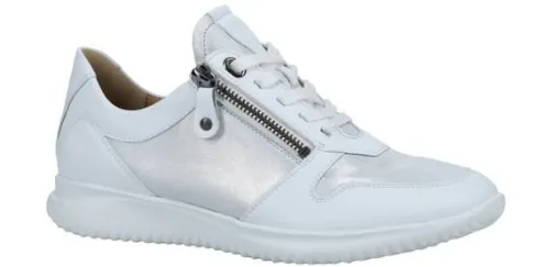 Sneakers van Hartjes in wit leer met zilver zijkant en voorblad. Gemaakt op een G wijdte op de leest Breeze. Bij de enkel zit een polsterrandje. De sneaker heeft 2 ritsen waardoor die makkelijk is aan en uit te trekken. De schoen heeft een uitneembaar voetbed en is geschikt voor uw eigen steunzool. Een lage sleehak maakt de schoen compleet. De schoen is vervaardigd uit zacht plantaardig gelooid leer. Kenmerkend is het lichte gewicht en het zachte gevoel met lopen. ||Hartjes is een Oostenrijks merk wat al sinds 1953 comfortabel schoeisel produceert met de hoogste kwaliteit en een rijke traditie van Oostenrijks schoenmakershandwerk. Het is een echt groen merk en produceren uitsluitend milieu vriendelijk in het hart van europa, met goede vakmensen, die onder goede omstandigheden werken. Innovatief , zoals het geïntegreerde , uitneembare lichtgewicht kurkvoetbed, natuurlijke voeringmaterialen als lamvel en walkloden (100% zuiver scheerwol), de plantaardig gelooide leersoorten. Hartjes verwerkt alleen hoogwaardige leersoorten. Ze beschermen de voet door haar robuustheid, de binnenzijde voelt zijdezacht aan en door haar natuurlijke, nerfstructuur maakt het iedere schoen uniek. Hartjes koopt u online bij Ruttenschoenen.nl
