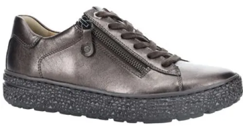 Sneakers van Hartjes in brons metallic. Gemaakt op een brede H wijdte. Aan de zijkant zit een rits waardoor de schoen makkelijk is aan en uit te trekken. De sneaker heeft een dikkere aparte zool. De voetbedden zijn uitneembaar voetbed en daardoor is de schoen geschikt voor uw eigen steunzool. De schoen is vervaardigd uit zacht plantaardig gelooid suede. Kenmerkend is het lichte gewicht en het zachte gevoel met lopen. ||Hartjes is een Oostenrijks merk wat al sinds 1953 comfortabel schoeisel produceert met de hoogste kwaliteit en een rijke traditie van Oostenrijks schoenmakershandwerk. Het is een echt groen merk en produceren uitsluitend milieu vriendelijk in het hart van europa, met goede vakmensen, die onder goede omstandigheden werken. Innovatief , zoals het ge�ïntegreerde , uitneembare lichtgewicht kurkvoetbed, natuurlijke voeringmaterialen als lamvel en walkloden (100% zuiver scheerwol), de plantaardig gelooide leersoorten. Hartjes verwerkt alleen hoogwaardige leersoorten. Ze beschermen de voet door haar robuustheid, de binnenzijde voelt zijdezacht aan en door haar natuurlijke, nerfstructuur maakt het iedere schoen uniek. Hartjes koopt u online bij Ruttenschoenen.nl