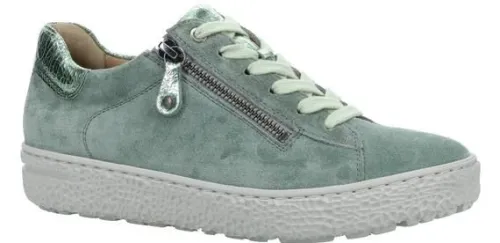 Sneakers van Hartjes in groen suede met bij de hiel een croco print. Gemaakt op een brede H wijdte. Aan de zijkant zit een rits waardoor de schoen makkelijk is aan en uit te trekken. De sneaker heeft een dikkere aparte zool. De voetbedden zijn uitneembaar voetbed en daardoor is de schoen geschikt voor uw eigen steunzool. De schoen is vervaardigd uit zacht plantaardig gelooid suede. Kenmerkend is het lichte gewicht en het zachte gevoel met lopen. ||Hartjes is een Oostenrijks merk wat al sinds 1953 comfortabel schoeisel produceert met de hoogste kwaliteit en een rijke traditie van Oostenrijks schoenmakershandwerk. Het is een echt groen merk en produceren uitsluitend milieu vriendelijk in het hart van europa, met goede vakmensen, die onder goede omstandigheden werken. Innovatief, zoals het geintegreerde uitneembare lichtgewicht kurkvoetbed, natuurlijke voeringmaterialen zoals lamvel en walkloden (100% zuiver scheerwol), en plantaardig gelooide leersoorten. Hartjes verwerkt alleen hoogwaardige leersoorten. Ze beschermen de voet door haar robuustheid, de binnenzijde voelt zijdezacht aan en door haar natuurlijke, nerfstructuur maakt het iedere schoen uniek. Hartjes koopt u online bij Ruttenschoenen.nl