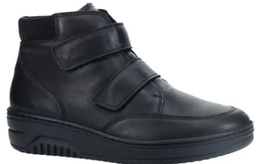Sportieve klittenband boots van Hartjes in zwart leer op een extra brede K wijdte op de leest Soul. Bij de enkel zit een polsterrand. De boot heeft een uitneembaar voetbed en is geschikt voor uw eigen steunzool. Een bijna platte sleehak met een goede afwikkeling maakt de schoen compleet. De schoen is vervaardigd uit zacht plantaardig gelooide leersoorten. Kenmerkend is het lichte gewicht en het zachte gevoel met lopen. ||Hartjes is een Oostenrijks merk wat al sinds 1953 comfortabel schoeisel produceert met de hoogste kwaliteit en een rijke traditie van Oostenrijks schoenmakershandwerk. Het is een echt groen merk en produceren uitsluitend milieu vriendelijk in het hart van europa, met goede vakmensen, die onder goede omstandigheden werken. Innovatief , zoals het geïntegreerde , uitneembare lichtgewicht kurkvoetbed, natuurlijke voeringmaterialen als lamvel en walkloden (100% zuiver scheerwol), de plantaardig gelooide leersoorten. Hartjes verwerkt alleen hoogwaardige leersoorten. Ze beschermen de voet door haar robuustheid, de binnenzijde voelt zijdezacht aan en door haar natuurlijke, nerfstructuur maakt het iedere schoen uniek. Hartjes koopt u online bij Ruttenschoenen.nl
