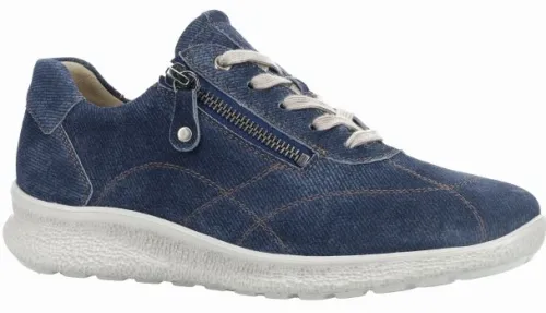 Sneakers van Hartjes in jeans suede met een fantasie print aan de zijkant en op de spiegel. De veter gaat lekker ver open en aan de zijkant zit een rits, waardoor die makkelijk is aan en uit te trekken. Gemaakt op een extra brede K wijdte op de leest Rap. Bij de hiel zit een polsterrand. De schoen heeft een uitneembaar voetbed en is geschikt voor uw eigen steunzool. Een bijna platte sleehak maakt de schoen compleet. Kenmerkend is het lichte gewicht en het zachte gevoel met lopen. ||Hartjes is een Oostenrijks merk wat al sinds 1953 comfortabel schoeisel produceert met de hoogste kwaliteit en een rijke traditie van Oostenrijks schoenmakershandwerk. Het is een echt groen merk en produceren uitsluitend milieu vriendelijk in het hart van europa, met goede vakmensen, die onder goede omstandigheden werken. Innovatief , zoals het geintegreerde, uitneembare lichtgewicht kurkvoetbed, natuurlijke voeringmaterialen als lamvel en walkloden (100% zuiver scheerwol), de plantaardig gelooide leersoorten. Hartjes verwerkt alleen hoogwaardige leersoorten. Ze beschermen de voet door haar robuustheid, de binnenzijde voelt zijdezacht aan en door haar natuurlijke, nerfstructuur maakt het iedere schoen uniek. Hartjes koopt u online bij Ruttenschoenen.nl