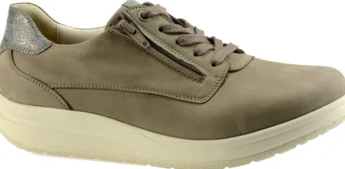 Deze sneakers van Hartjes zijn speciaal gemaakt voor super brede gevoelige voeten. Uitermate geschikt voor de diabetische en of reumatische voet, waarbij een extra afwikkeling in de zool is. Gemaakt in licht taupe nubuck met een inzet van metallic leer met een fantasie print. Bij de enkel zit een polster rand. Gemaakt op een super brede M wijdte met extra teenruimte. Aan de zijkant zit een rits, waardoor als de veter eenmaal is ingesteld, de schoen makkelijk is aan en uit te trekken. De schoen heeft een uitneembaar voetbed en is geschikt voor uw eigen steunzool. Een lage sleehak in een lichte kleur maakt de schoen compleet. De schoen is vervaardigd uit zacht plantaardig gelooid leer. Kenmerkend is het lichte gewicht en het zachte gevoel met lopen. ||Hartjes is een Oostenrijks merk wat al sinds 1953 comfortabel schoeisel produceert met de hoogste kwaliteit en een rijke traditie van Oostenrijks schoenmakershandwerk. Het is een echt groen merk en produceren uitsluitend milieu vriendelijk in het hart van europa, met goede vakmensen, die onder goede omstandigheden werken. Innovatief , zoals het geïntegreerde , uitneembare lichtgewicht kurkvoetbed, natuurlijke voeringmaterialen als lamvel en walkloden (100% zuiver scheerwol), de plantaardig gelooide leersoorten. Hartjes verwerkt alleen hoogwaardige leersoorten. Ze beschermen de voet door haar robuustheid, de binnenzijde voelt zijdezacht aan en door haar natuurlijke, nerfstructuur maakt het iedere schoen uniek. Hartjes koopt u online bij Ruttenschoenen.nl