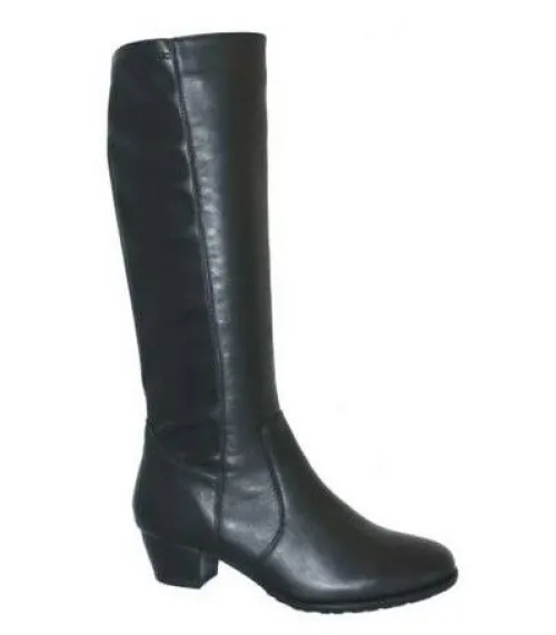 Lange laarzen zijn lastig op de webshop te bestellen omdat ze op verschillende plaatsen goed moeten zitten. En wij vaak dan weten wat u het beste kan passen. We adviseren dan ook om ze in de winkel te komen passen. ||Lange laars van Helioform in zwart leer met een stretch achterkant waardoor rek mogelijkheid. De laars is geschikt voor een brede kuit XL ca 42 cm en een extra brede voet wijdte K. De hak is laag ca 35 mm. De voetbedden zijn uitneembaar en de laars is dus geschikt voor uw eigen steunzool. ||Helioform is een Nederlands fabrikaat in een populaire prijsklasse, de schoenen worden in Nederland ontworpen en tegenwoordig onder streng toezicht van eigen mensen onder goede arbeidsomstandigheden in India gemaakt. Ze maken verschillende wijdtematen en meestal zijn ze geschikt voor eigen steunzool. Helioform koop je online bij Ruttenschoenen.nl
