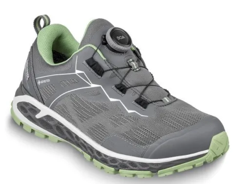 Meindl Power Walker 3.0 heeft een BOA sluiting, waardoor de schoen makkelijk is los en vast te maken. (met 1 click of draaibeweging) Gemaakt in grijs mesh met groene details en met Goretex, waardoor wind en water dicht. De power walker zool heeft een dynamische tussenzool met een goede afwikkeling , waardoor die erg lekker loopt. Ze zijn licht van gewicht ca 400 gram. Uit de comfort fit groep op een gebroken ca J wijdte en een wellness walking soft step zool. ||De fabriek van Meindl staat in zuid Duitsland en ze maken hoogwaardige (berg) wandelschoenen. Het is nog een echt familie bedrijf.