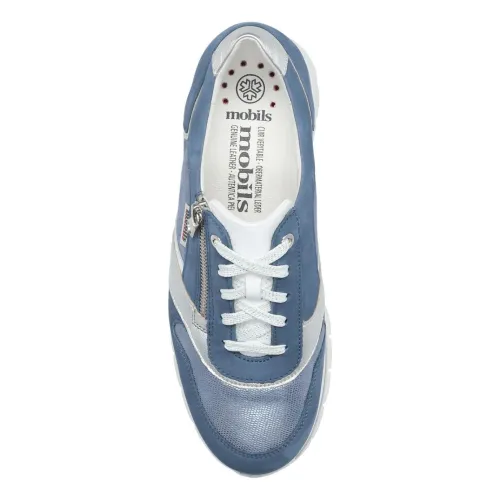 Sneaker van Mephisto Mobil in een blauw met wit combinatie nubuck. De Mobils van Mephisto hebben een bredere leest ca H wijdte. Aan de buitenkant zit een rits waardoor als de veter eenmaal goed is ingesteld de schoen makkelijk is aan en uit te trekken. De schoen voelt lekker zacht aan. De sleehak is iets hoger en de zool heeft een profiel en is comfortabel met lopen. De schoen heeft een uitneembaar voetbed en is daardoor geschikt voor uw eigen steunzool. ||Mephisto is een Frans fabrikaat en heeft diverse fabrieken. Mephisto kenmerkt zich als een comfortabele schoen die meestal niet uitgelopen hoeft te worden, ook de zool is zacht en verend. Een echte schoen voor kilometers loopplezier. meestal niet uitgelopen hoeft te worden, ook de zool is zacht en verend. Een echte schoen voor kilometers loopplezier. Mephisto Koopt u online bij Ruttenschoenen.nl