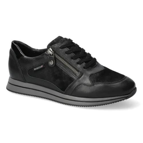 Sneaker van Mephisto in zwart leer met suede en een bijna platte hak. Gemaakt op een slankere wijdte ca F/G. Aan de buitenkant zit een rits waardoor als de veter eenmaal goed is ingesteld de schoen makkelijk is aan en uit te trekken. De schoen voelt lekker zacht aan. De zool heeft een licht profiel en is comfortabel met lopen. De schoen heeft een uitneembaar voetbed en is daardoor geschikt voor uw eigen steunzool. ||Mephisto is een Frans fabrikaat en heeft diverse fabrieken. Mephisto kenmerkt zich als een comfortabele schoen die meestal niet uitgelopen hoeft te worden, ook de zool is zacht en verend. Een echte schoen voor kilometers loopplezier. meestal niet uitgelopen hoeft te worden, ook de zool is zacht en verend. Een echte schoen voor kilometers loopplezier. Mephisto Koopt u online bij Ruttenschoenen.nl