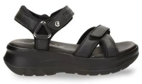 Sandaal van Panama Jack met een lage plateauzool in zwart leer. De sandaal heeft een bijna platte hak en een dikke zool met een zacht voetbed. Op de wreef en de voorvoet is de sandaal met klittenbanden te verstellen. ||Panama Jack komt uit Spanje, waar ze ook gemaakt worden. Panama Jack weet goed kwaliteit, pasvorm en mode samen te voegen en heeft een prima prijs /kwaliteit verhouding en heeft dan ook veel tevreden klanten. Panama Jack koop je online bij Ruttenschoenen