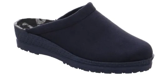Dames pantoffelslipper van Rohde in blauw velours met voetbed. Aan de bovenkant is die gepolsterd en verder geheel glad. De slipper heeft aan de binnenzijde op de zool een aparte tekening. De hak is bijna plat ||Rohde is van oorsprong een Duitse firma en inmiddels overgenomen door een Italiaan. Rohde wordt hoofdzakelijk in de aziatische landen gefabriceerd. ||||||||||||Bestelnummer 410 50 0001