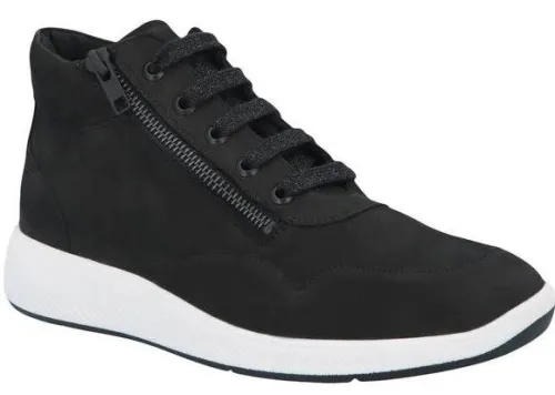 Boot van Solidus verstelbaar met een veter in zwart nubuck op een brede H wijdte op de leest Halea. Bij de zijkant zit een rits waardoor die makkelijk is aan en uit te trekken. Met een lage doorlopende witte zool. Met een uitneembaar voetbed en zijn dus geschikt voor uw eigen steunzool. ||Solidus is een Duits fabricaat, met diverse leesten en wijdtematen, van smal tot super breed. Ze gebruiken zachte leersoorten, waardoor ze vaak zeer comfortabel en geschikt voor gevoelige voeten zijn. Vor de zeer gevoelige en of diabete voet, maken ze ook nog een speciale collectie “Solicare” Veel leesten en artikelen komen vaak weer terug, veelal in een andere uitvoering. Solidus koopt u off en online bij Ruttenschoenen.nl
