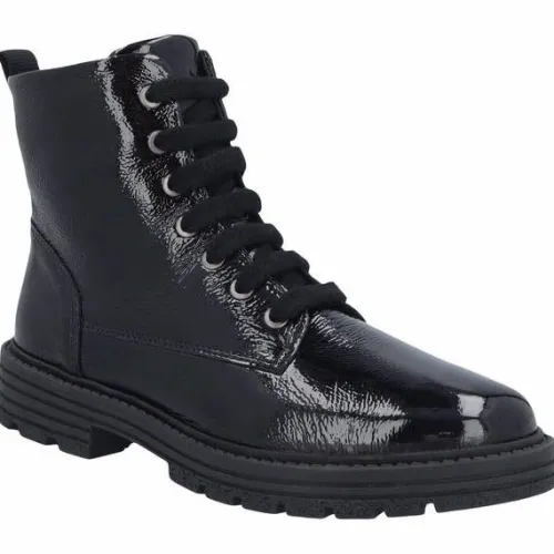 Boot van Solidus in zwart kreuklak met een rits aan de binnenzijde. Gemaakt op een extra brede K wijdte op de leest Kelly. Deze boot is verstelbaar met een veter en heeft een bijna platte hak. Geschikt voor uw eigen steunzool door het voetbed dat uitneembaar is. ||Solidus is een Duits fabricaat, met diverse leesten en wijdtematen, van smal tot super breed. Ze gebruiken zachte leersoorten, waardoor ze vaak zeer comfortabel en geschikt voor gevoelige voeten zijn. Vor de zeer gevoelige en of diabete voet, maken ze ook nog een speciale collectie “Solicare” Veel leesten en artikelen komen vaak weer terug, veelal in een andere uitvoering. Solidus koopt u off en online bij Ruttenschoenen.nl