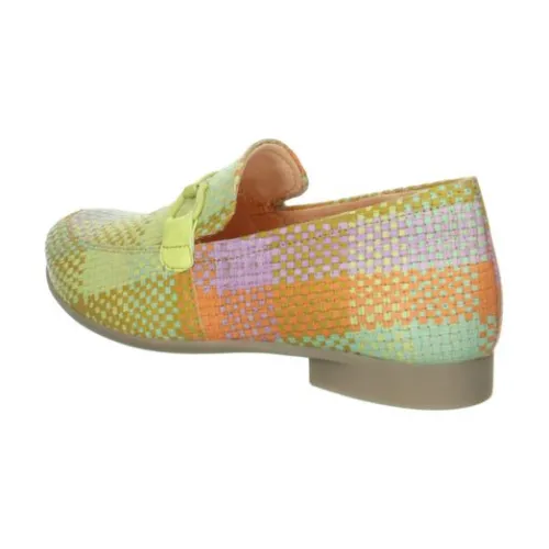Instapper van Think in een geel combinatie vlechtprint leer. De schoen sluit hoger op de voet en heeft een sier bit over de wreef. De schoen is bij de hiel extra ingenomen waardoor die beter sluit. De schoen heeft een stevig contrefort. Gemaakt op de leest Guad 2. De zolen zijn uitneembaar waardoor de schoen geschikt is voor een eigen steunzool. ||Think is een merk wat uit Oostenrijk komt en bekend staat om hun eigenzinnige collectie vervaardigd uit mooie en aparte materialen. De meeste voetbedden zijn uitneembaar. Het leer wordt plantaardig gelooid. Think maakt geen wijdte maten, maar de schoenen worden vaak op een bredere leest gemaakt.