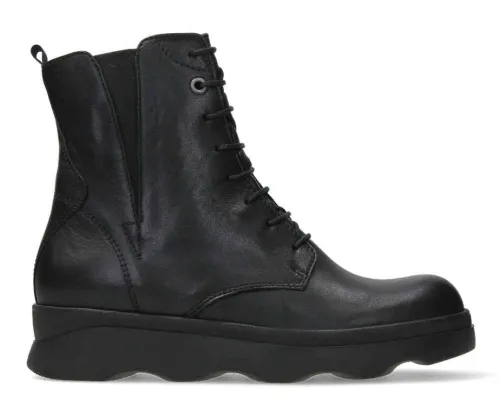Sportieve boot van Wolky op met een lekker lopende golvende zool in zwart leer op de leest Mirai. De boot is verstelbaar met een veter en aan de binnenkant zit een rits waardoor die makkelijk aan en uit te trekken is. Aan de buitenzijde zit een spie met elastiek. De boot heeft een bijna platte hak een uitneembaar voetbed en ze zijn dus geschikt voor uw eigen steunzool. ||Wolky is een Nederlands merk, wat grotendeels in Portugal geproduceerd wordt. Ze hebben vaak een wat bredere leest en bieden ook vaak goed ruimte bij de tenen. Kenmerkend zijn de zachte zolen waarop u verend loopt. Het lopen op wolken effect. Wolky wordt dan ook vaak als zeer comfortabel ervaren. Ze hebben vaak een wat bredere leest en bieden ook vaak goed ruimte bij de tenen. Wolky koopt u online bij Ruttenschoenen.nl
