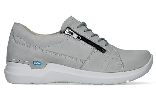 Veterschoen van Wolky in licht grijs nubuck op de leest Wally, dit is een brede ronde leest die veel ruimte bij de tenen heeft. De schoen is verstelbaar met een veter en aan de zijkant zit een rits waardoor die makkelijk aan en uit te trekken is. Deze schoen biedt veel comfort en heeft een comfortabele zool. De voetbedden zijn uitneembaar en ze zijn dus geschikt voor uw eigen steunzool. ||Wolky is een Nederlands merk, wat grotendeels in Portugal geproduceerd wordt. Ze hebben vaak een wat bredere leest en bieden ook vaak goed ruimte bij de tenen. Kenmerkend zijn de zachte zolen waarop u verend loopt. Het lopen op wolken effect. Wolky wordt dan ook vaak als zeer comfortabel ervaren. Ze hebben vaak een wat bredere leest en bieden ook vaak goed ruimte bij de tenen.