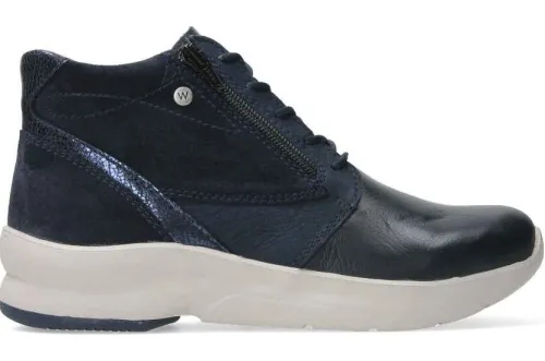 Boot van Wolky in blauw leer met suede op de leest Conway , dit is een gemiddelde leest die veel ruimte bij de tenen heeft. De boot is verstelbaar met een veter en aan de zijkant zit een rits waardoor die makkelijk aan en uit te trekken is. Deze boot biedt veel comfort en heeft een comfortabele zool. De voetbedden zijn uitneembaar en ze zijn dus geschikt voor uw eigen steunzool. ||Wolky is een Nederlands merk, wat grotendeels in Portugal geproduceerd wordt. Ze hebben vaak een wat bredere leest en bieden ook vaak goed ruimte bij de tenen. Kenmerkend zijn de zachte zolen waarop u verend loopt. Het lopen op wolken effect. Wolky wordt dan ook vaak als zeer comfortabel ervaren. Ze hebben vaak een wat bredere leest en bieden ook vaak goed ruimte bij de tenen. Wolky koopt u online bij Ruttenschoenen.nl