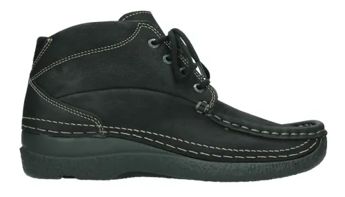 Enkel Boot van Wolky in zwart gevet nubuck, verstelbaar met een veter. Geschikt voor uw eigen steunzool. Op de leest Roll Moc. Deze boot en leest maakt Wolky al jaren en heeft zichzelf meer dan bewezen, is zeer comfortabel en heeft een bijna platte hak en een rubber zool. ||Wolky is een Nederlands merk, wat grotendeels in Portugal geproduceerd wordt. Ze hebben vaak een wat bredere leest en bieden ook vaak goed ruimte bij de tenen. Kenmerkend zijn de zachte zolen waarop u verend loopt. Het lopen op wolken effect. Wolky wordt dan ook vaak als zeer comfortabel ervaren. Ze hebben vaak een wat bredere leest en bieden ook vaak goed ruimte bij de tenen. Kenmerkend zijn de zachte zolen waarop u verend loopt. Het lopen op wolken effect. Wolky wordt dan ook vaak als zeer comfortabel ervaren. Wolky koop je off en online bij Ruttenschoenen.nl