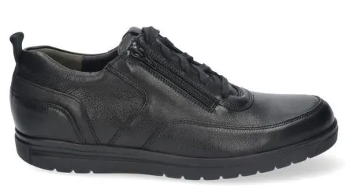 Sneakers van Gijs met de Go zool op een brede H wijdte op de leest 205 in zwart leer. Aan de buitenzijde zit een rits. De Go zool is een innovatieve zool, ze zijn lichter van gewicht stabiel en antislip, daarbij wordt het lopen vergemakkelijkt door de speciale afwikkeling in de zool. De voetbedden zijn uitneembaar, dus de schoen is geschikt voor eigen steunzool. ||Gijs komt uit de koker van Durea en staat dus garant voor een goede kwaliteit en pasvorm. Jaren van ervaren ouderwetse vakmanschap ligt hieraan ten grondslag. Inmiddels al een aantal seizoenen verkrijgbaar verovert het zo zijn eigen plekje. Gijs koop je online bij Ruttenschoenen.nl