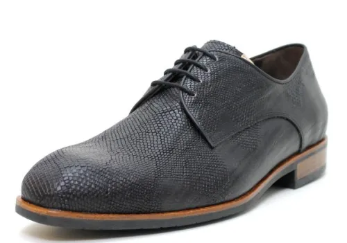 Geklede veter schoen van Gijs in zwart leer met een fijne crocoprint. Gemaakt op een brede H wijdte, op de leest 505. De voetbedden zijn uitneembaar en de schoen is dus prima geschikt voor eigen steunzool. Vervaardigd uit kalfsleer met een TPU zool. De hak is met leer ingelegd. ||Gijs komt uit de koker van Durea en staat dus garant voor een goede kwaliteit en pasvorm. Jaren van ervaren ouderwetse vakmanschap ligt hieraan ten grondslag. Inmiddels al een aantal seizoenen verkrijgbaar verovert het zo zijn eigen plekje. Inmiddels al een aantal seizoenen verkrijgbaar verovert het zo zijn eigen plekje. Gijs koop je online bij Ruttenschoenen.nl