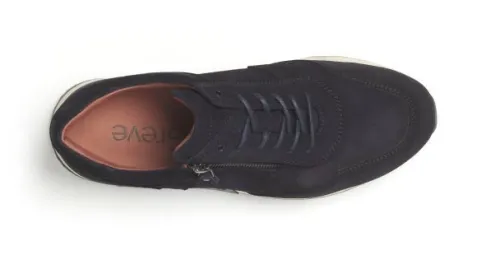 Sneaker van Greve in zwart gevet suede op een extra brede K wijdte op de leest Haarlem met een uitneembaar voetbed. De schoen is geschikt voor uw eigen steunzool. ||Greve is een Nederlandse fabriek, in 1898 begon Hermanus Greve met een schoenmakerij als doel Nederlands meest stijlvolle en superieure schoenen maken. De filosofie design, comfort en vakmanschap is nog steeds het uitgangspunt.