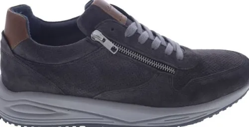Sneaker van Livingstone (van de makers van Piedro) in grijs suede op een smalle E wijdte. AAn de zijkant zit een rits waardoor die makkelijk is aan en uit te trekken. De schoen is stevig en heeft een stevig contrefort. De voetbedden zijn uitneembaar. Mede daardoor zijn de schoenen geschikt voor eigen steunzool. ||Livingstone is een Nedelands merk die diverse wijdtematen maken. Ze hebben een uitneembaar voetbed en mede doordat het goede stevige schoenen zijn , zijn ze uitermate geschikt voor eigen steunzolen.