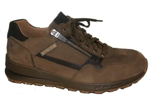 Sneaker van Mephisto in groem met taupe suede in combinatie met zwart leer. Aan de buitenkant zit een rits waardoor als de veter eenmaal goed is ingesteld de schoen makkelijk is aan en uit te trekken. De schoen voelt lekker zacht aan. De zool heeft een profiel en is comfortabel met lopen. De schoen heeft een uitneembaar voetbed en is daardoor geschikt voor uw eigen steunzool. ||Mephisto is een Frans fabrikaat en heeft diverse fabrieken. Mephisto kenmerkt zich als een comfortabele schoen die meestal niet uitgelopen hoeft te worden, ook de zool is zacht en verend. Een echte schoen voor kilometers loopplezier. meestal niet uitgelopen hoeft te worden, ook de zool is zacht en verend. Een echte schoen voor kilometers loopplezier. Mephisto Koopt u online bij Ruttenschoenen.nl