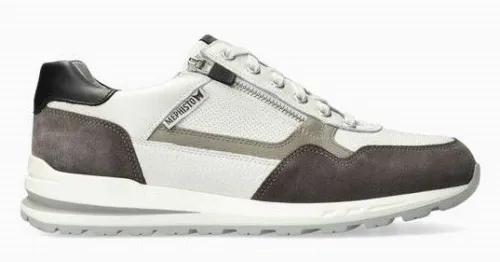 Sneaker van Mephisto in wit leer met grijs en zwart gecombineerd. Aan de buitenkant zit een rits waardoor als de veter eenmaal goed is ingesteld de schoen makkelijk is aan en uit te trekken. De schoen voelt lekker zacht aan. De zool heeft een profiel en is comfortabel met lopen. De schoen heeft een uitneembaar voetbed en is daardoor geschikt voor uw eigen steunzool. ||Mephisto is een Frans fabrikaat en heeft diverse fabrieken. Mephisto kenmerkt zich als een comfortabele schoen die meestal niet uitgelopen hoeft te worden, ook de zool is zacht en verend. Een echte schoen voor kilometers loopplezier. meestal niet uitgelopen hoeft te worden, ook de zool is zacht en verend. Een echte schoen voor kilometers loopplezier. Mephisto Koopt u online bij Ruttenschoenen.nl