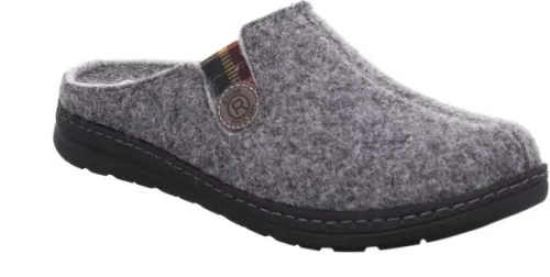 Heren pantoffelslipper van Rohde in licht grijs vilt. Aan de zijkant zit elastiek. ||Rohde is van oorsprong een Duitse firma en inmiddels overgenomen door een Italiaan. Rohde wordt hoofdzakelijk in de aziatische landen gefabriceerd.