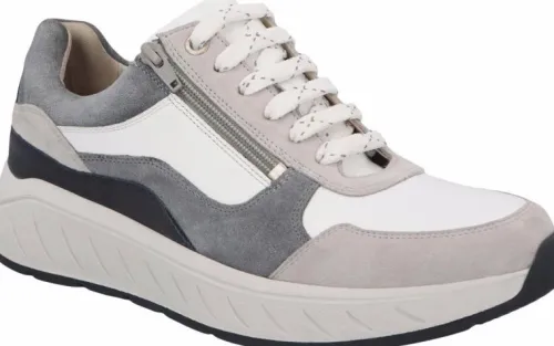 Sneaker van Solidus in een wit/grijs combinatie suede. Geschikt voor extra brede voeten op een K wijdte op de leest Ken. Aan de zijkant zit een rits, waardoor die makkelijk is aan en uit te trekken. De witte chunky zool geeft een jonge look. De voetbedden zijn uitneembaar en de schoenen zijn dus geschikt voor uw eigen steunzool. ||Solidus is een Duits fabricaat, met diverse leesten en wijdtematen, tot super breed. Ze gebruiken zachte leersoorten, waardoor ze vaak zeer comfortabel en geschikt voor gevoelige voeten zijn. De schoenen zijn ook vaak lichter van gewicht. Veel leesten en artikelen komen vaak weer terug, veelal in een andere uitvoering. Solidus koopt u off en online bij Ruttenschoenen.nl