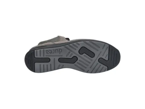 Boot van Durea op de Go zool in grijs nubuck in combinatie met een fijne print op de spiegel en bij de polstering om de enkel. Gemaakt op een bijna platte sleehak. Aan de zijkant zit een rits waardoor die makkelijk is aan en uit te trekken. De innovatie van de Go zool zorgt voor een ideaal looppatroon en stimuleert daarmee een natuurlijke houding van het lichaam waarbij het lopen vergemakkelijkt wordt. De boots zijn lichter van gewicht, soepel met dragen en zorgen voor veel demping en stabiliteit. Uitermate geschikt bij een hallux valgus, hallux rigidus, hielspoor, peesplaatontsteking en reuma. Goed te verstellen met een veter, daarbij is de boot gemaakt op een gebroken wijdte dwz dat de boot in de hielpartij smaller is, waardoor die extra goed om de hiel sluit. De zool is van PU en de hak is 1,7 cm hoog. Gemaakt op een G wijdte op de leest 684. Uiteraard heeft de boot een stevig contrefort en een uitneembaar voetbed. ||Durea is een Nederlands fabricaat, met diverse leesten en wijdtematen. Het ontwerp en de afwerking geschiedt in Drunen. De productie vindt in het buitenland plaats, waar Durea fabrieken bezit, onder toezicht van eigen mensen. Iedere schoen ondergaat ca 200 handelingen, Daar Durea alles in eigen beheer heeft kunnen zij hun hoge kwaliteit waarborgen. Durea koopt u online bij Ruttenschoenen.nl