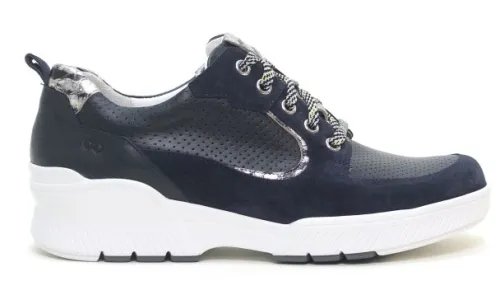 Sneaker van Durea op moderne nieuwe Go zool in blauw suède met leer gecombineerd en een lichtgekleurde zool. Kenmerken van de innovatieve Go zool is dat die lichter van gewicht is en zorgt voor een ideaal looppatroon welke de natuurlijke houding van het lichaam stimuleert. Tevens zorgt de zool voor veel demping. Gemaakt op een G wijdte op de leest 684. De hak is 1,7 cm hoog. De schoen heeft een uitneembaar voetbed en is geschikt voor uw eigen steunzool. ||Durea is een Nederlands fabricaat, met diverse leesten en wijdtematen. Het ontwerp en de afwerking geschiedt in Drunen. De productie vindt in het buitenland plaats, waar Durea eigen fabrieken bezit, onder toezicht van eigen mensen. Iedere schoen ondergaat ca 200 handelingen, Daar Durea alles in eigen beheer heeft kunnen zij hun hoge kwaliteit waarborgen. Durea koopt u off en online bij Ruttenschoenen.nl