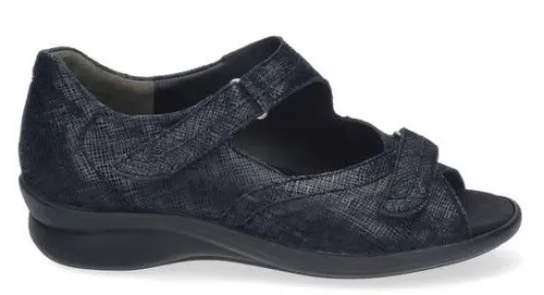Sandaal van Durea met een dichte hiel in blauw nubuck met een fijne streepjes print. De sandaal is verstelbaar met 2 klittenbanden op de voet. Mede door de dichte hiel biedt deze sandaal extra stevigheid. Gemaakt op een G wijdte op de leest 234. De voetbedden zijn uitneembaar en daardoor ook geschikt voor uw eigen steunzool. De sleehak is 2 cm en de zool is gemaakt van Pu met demping. ||Durea is een Nederlands fabricaat, met diverse leesten en wijdtematen. Het ontwerp en de afwerking geschiedt in Drunen. De productie vindt in het buitenland plaats, waar Durea eigen fabrieken bezit, onder toezicht van eigen mensen. Iedere schoen ondergaat ca 200 handelingen, Daar Durea alles in eigen beheer heeft kunnen zij hun hoge kwaliteit waarborgen. Durea koopt u online en offline bij Ruttenschoenen.nl