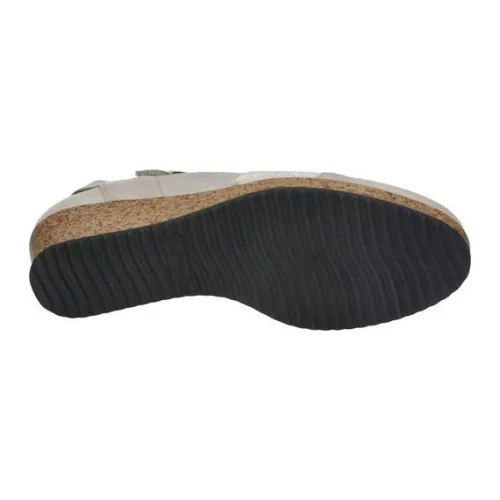 Sandaal van Durea met een dichte teen in licht beige suede met champagne metallic. Op een extra brede K wijdte op de leest 588. De schoen heeft een kurk look sleehak met een kleine plateauzool waardoor die hoger lijkt dan die is. Door het verschil van de hak ten opzichte van de zool is de echte hakhoogte 37 mm. De zool is licht van gewicht, dempend en anti slip. De voetbedden zijn uitneembaar en ze zijn dus geschikt voor uw eigen steunzool. ||Durea is een Nederlands fabricaat, met diverse leesten en wijdtematen. Alle leesten van Durea zijn zgn gebroken leesten, dat wil zeggen de hielpartij is altijd een smallere leest dan de voorvoet. Het ontwerp en de afwerking geschiedt in Drunen. De productie vindt in het buitenland plaats, waar Durea fabrieken bezit, onder toezicht van eigen mensen. Iedere schoen ondergaat ca 200 handelingen. Daar Durea alles in eigen beheer heeft kunnen zij hun hoge kwaliteit waarborgen. Durea koopt u online en offline bij Ruttenschoenen.nl