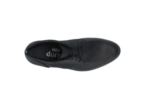 Boot van Durea in zwart nubuck met een fijne print op een extra brede K wijdte op de leest 938. Deze boot is wat gekleder en heeft een lage hak van 3 cm en polstering onder de voorvoet. Uiteraard heeft de boot een stevig contrefort. De voetbedden zijn uitneembaar en de boot is daardoor ook geschikt voor uw eigen steunzool. ||Durea is een Nederlands fabricaat, met diverse leesten en wijdtematen. Het ontwerp en de afwerking geschiedt in Drunen. De productie vindt in het buitenland plaats, waar Durea fabrieken bezit, onder toezicht van eigen mensen. Iedere schoen ondergaat ca 200 handelingen, Daar Durea alles in eigen beheer heeft kunnen zij hun hoge kwaliteit waarborgen. Durea koopt u online bij Ruttenschoenen.nl