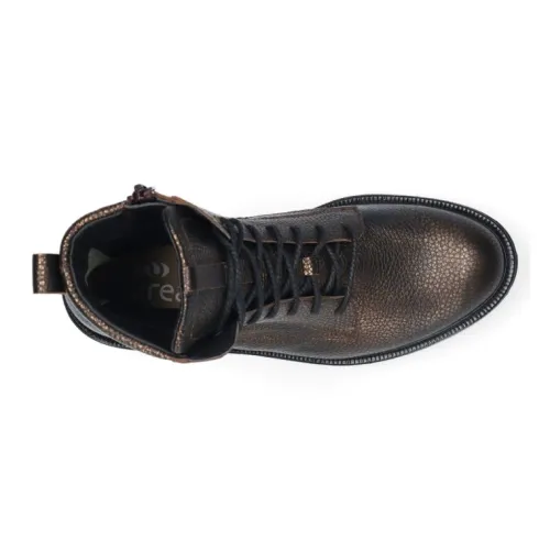 Bikerboot van Durea in brons geprint leer op een bredere K wijdte op de leest 188. Bij de enkels is de boot gepolsterd en aan de binnenzijde zit een rits. Het onderwerk Candy (EVA) heeft een lage hak van 15 mm is stabiel en licht van gewicht en heeft extra demping. De voetbedden zijn uitneembaar. ||Durea is een Nederlands fabricaat, met diverse leesten en wijdtematen. Het ontwerp en de afwerking geschiedt in Drunen. De productie vindt in het buitenland plaats, waar Durea fabrieken bezit, onder toezicht van eigen mensen. Iedere schoen ondergaat ca 200 handelingen, Daar Durea alles in eigen beheer heeft kunnen zij hun hoge kwaliteit waarborgen.
