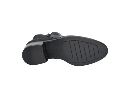 Korte laars van Durea in zwart leer met bij de hielpartij een fijne print Deze laars heeft een lage hak van ca 25 mm en een rits aan de binnenkant. De voetbedden zijn uitneembaar en daardoor is die geschikt voor uw eigen steunzool. Gemaakt op een extra K wijdte op de leest 918. Uiteraard heeft de laars een stevig contrefort. ||Durea is een Nederlands fabricaat, met diverse leesten en wijdtematen. Het ontwerp en de afwerking geschiedt in Drunen. De productie vindt in het buitenland plaats, waar Durea fabrieken bezit, onder toezicht van eigen mensen. Iedere schoen ondergaat ca 200 handelingen, Daar Durea alles in eigen beheer heeft kunnen zij hun hoge kwaliteit waarborgen. Durea koopt u online bij Ruttenschoenen.nl of Dureaonline.nl