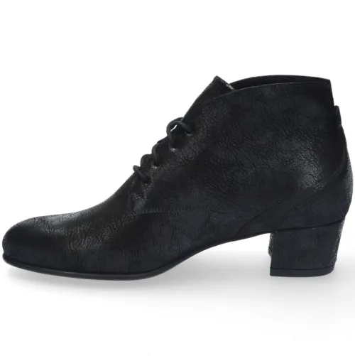 Geklede boot van Durea in zwart geprint nubuck. Gemaakt op een extra brede K wijdte op leest 918, het onderwerk is Mayke met een lage hak van 30 mm. De boot heeft een stevig contrefort is stabiel, licht van gewicht, flexibel, extra dempend en anti slip. De zool is van rubber en de voetbedden zijn uitneembaar. ||Durea is een Nederlands fabricaat, met diverse leesten en wijdtematen. Het ontwerp en de afwerking geschiedt in Drunen. De productie vindt in het buitenland plaats, waar Durea fabrieken bezit, onder toezicht van eigen mensen. Iedere schoen ondergaat ca 200 handelingen, Daar Durea alles in eigen beheer heeft kunnen zij hun hoge kwaliteit waarborgen.