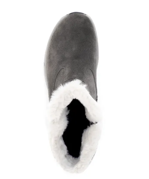 Korte laars van Gabor in taupe suede met een bontrandje met een Rolling soft zool. Deze leest heeft een speciale zool waarbij het lopen vergemakkelijkt wordt. Aan de binnenzijde zit een rits, waardoor die makkelijk aan en uit te tekken is. Het voetbed is uitneembaar, dus geschikt voor uw eigen steunzool. De laar heeft een bijna platte hak. ||Gabor is een Duits fabricaat, met diverse leesten en wijdtematen. Ze staan bekend om hun goede leesten en zachte leersoorten. Modisch comfortabel tegen betaalbare prijzen. Sommige hebben een uitneembaar voetbed. Gabor koop je online bij Ruttenschoenen.