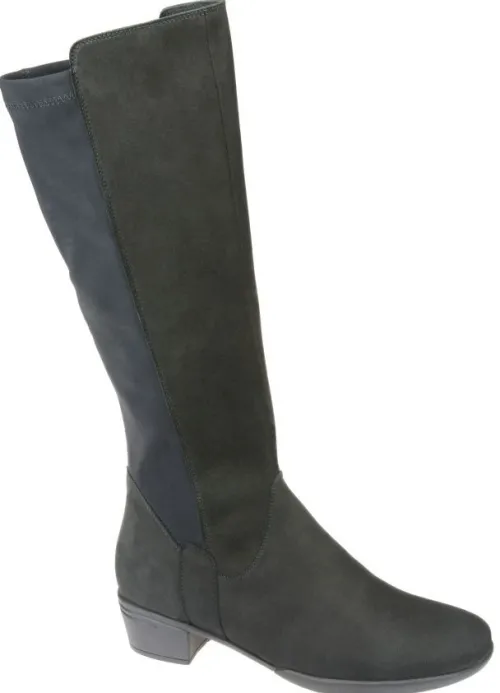 Lange laarzen zijn lastig op de webshop te bestellen omdat ze op verschillende plaatsen goed moeten zitten. En wij vaak dan weten wat u het beste kan passen. We adviseren dan ook om ze in de winkel te komen passen. ||Lange laars van Hartjes welke aan de voorkant hoger valt in zwart nubuck met stretchstof en een rits aan de binnenzijde. Gemaakt op een G wijdte en een schachtwijdte van ca 38 cm dus voor veel voeten geschikt. De laars is zeer licht en soepel met dragen en geschikt voor uw eigen steunzool. Heeft een lage hak van ca 30 mm en is vervaardigd uit zacht plantaardig gelooid leer. Kenmerkend is het lichte gewicht en het zachte gevoel met lopen. ||Hartjes is een Oostenrijks merk wat al sinds 1953 comfortabel schoeisel produceert, met de hoogste kwaliteit en een rijke traditie van Oostenrijks schoenmakershandwerk. Het is een echt groen merk en produceren uitsluitend milieu vriendelijk in het hart van europa, met goede vakmensen, die onder goede omstandigheden werken. Innovatief , zoals het geïntegreerde , uitneembare lichtgewicht kurkvoetbed, natuurlijke voeringmaterialen als lamvel en walkloden (100% zuiver scheerwol), de plantaardig gelooide leersoorten. Hartjes verwerkt alleen hoogwaardige leersoorten. Ze beschermen de voet door haar robuustheid, de binnenzijde voelt zijdezacht aan en door haar natuurlijke, nerfstructuur maakt het iedere schoen uniek. maakt het iedere schoen uniek.